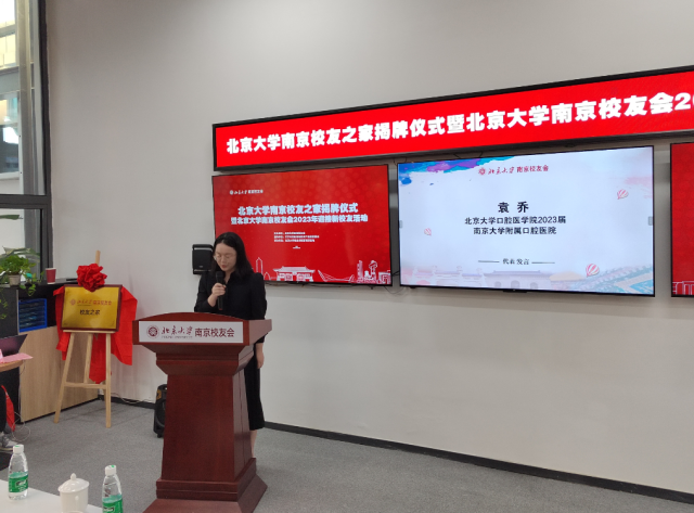 随后,三位来宁新校友代表进行发言。他们分别是:毕业于北京大学信息科学技术学院、于2023年入职南京市鼓楼区委宣传部的范小晟,毕业于北京大学口腔医学院、现就业于南京大学附属口腔医院的袁乔,毕业于北京大学外国语学院、现就业于南京师范大学的郭靖媛。