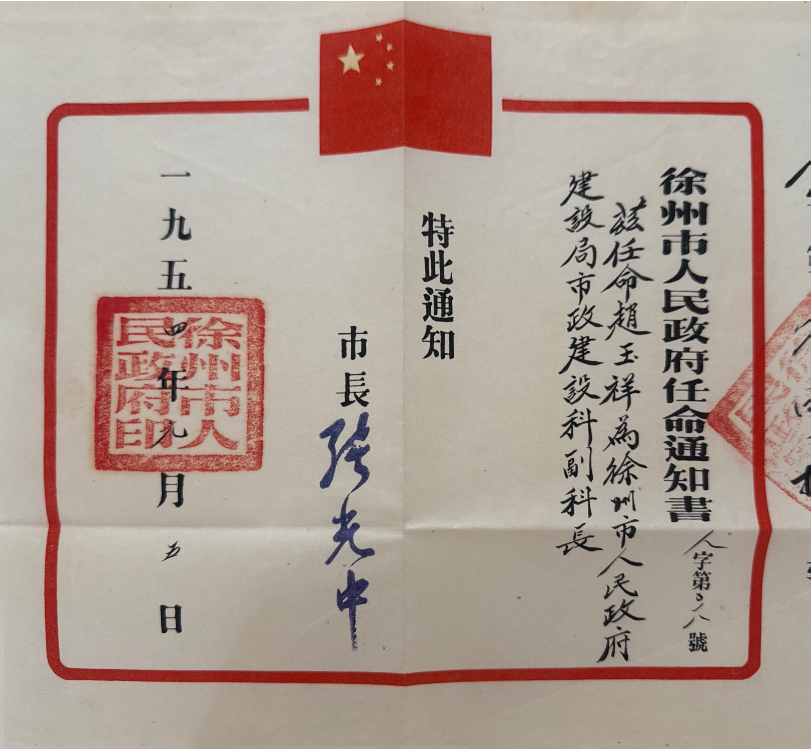 12月3日,两位身穿军装的政府人员肩背长枪,拿着花名册子,走进醒狮巷,指名道姓,要找赵玉祥。左邻右舍以为,赵玉祥在旧政府干过事,来人怕是逮捕他的,纷纷出门围观,为他捏了一把汗。哪知来人并没有逮人,临出门时,还站得公公正正,给赵玉祥行了一个军礼。一问情况,原来市政府为了加强城市管理,疏通河道,整修道路,是请赵玉祥出山,前往政府报到的。