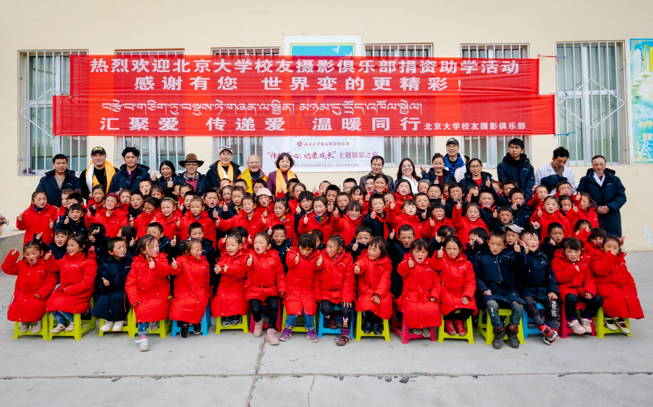 在笆子房村小学,四川校友会为学校捐赠书包、文具;拍摄期间,2001级校友刘凤祁、2009级校友孙永超等不仅全程陪同,还为摄影俱乐部提供了许多便利的条件。在新疆塔什库尔干乡小学,新疆校友会帮忙联系活动学校、代办捐赠物资的采购,国发院EMBA校友朱晖更出资为学生捐赠校服、鞋子,以及照相设备。在尖德小学,由1980级校友黄永山负责的萨岗小溪教育基金出资为学校捐赠了定制羽绒服、被褥、电视机;2023年重访时,参加摄影计划活动的全体校友向学校捐赠体育器材。在内蒙古达来诺日镇民族实验小学,1988级部分校友为学校捐赠高清电子屏。在河北阜平台峪小学,1985级法律系校友唐越代表君合律师事务所向学校捐赠了数十台电脑、上千册图书、钢琴和教学文具,并携手律所的年轻人走进学校,开展多元课程。此外,摄影俱乐部的校友们也身体力行,不仅多次捐赠,前后还有近20位校友亲身参与,跋山涉川,克服种种困难,以实际行动支持影像档案计划的拍摄。