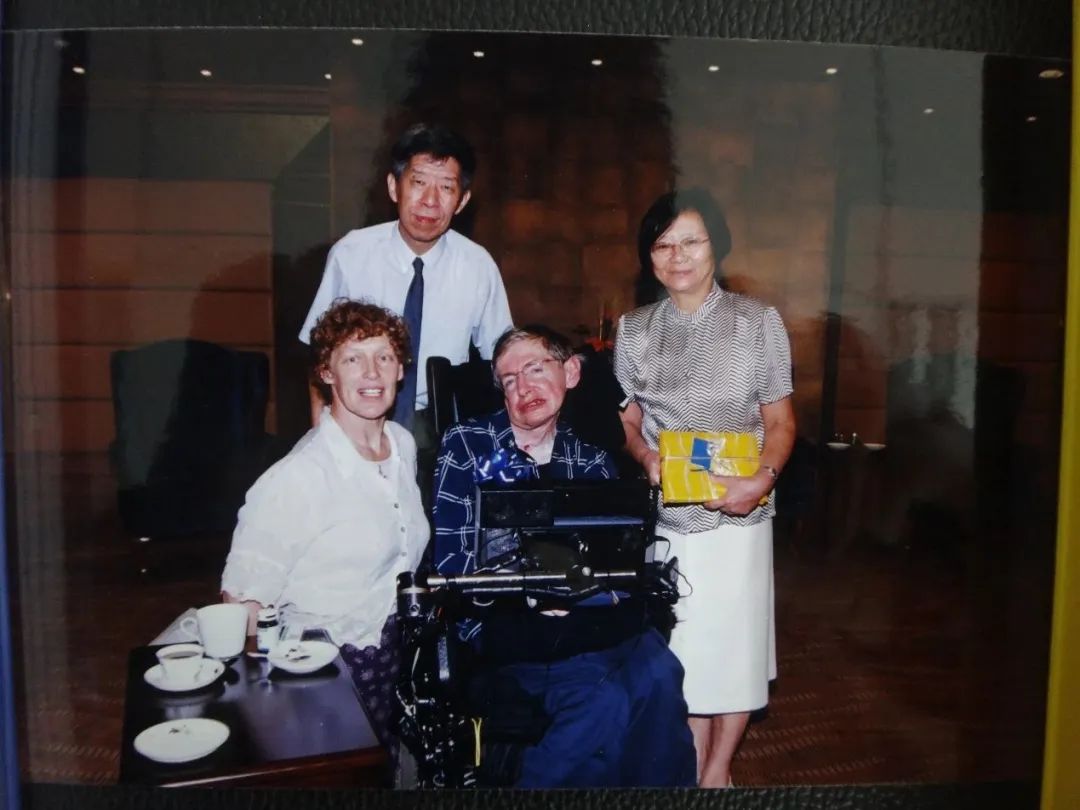2002年8月,杨乐夫妇(后排)与霍金夫妇合影