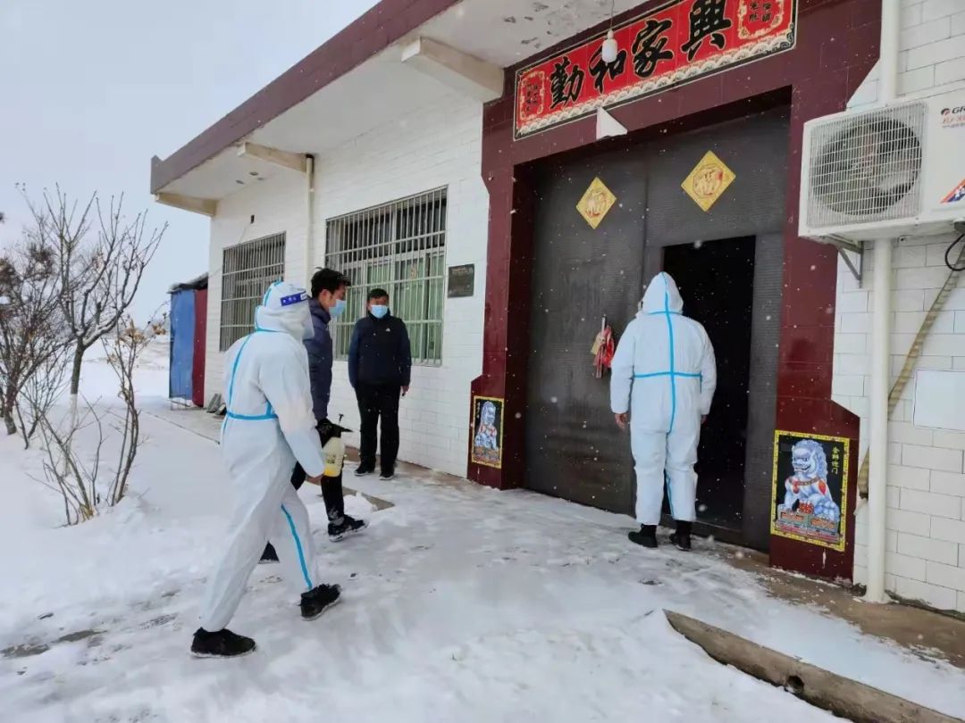 疫情和大雪如约而至,带领工作队上门派发防疫物资