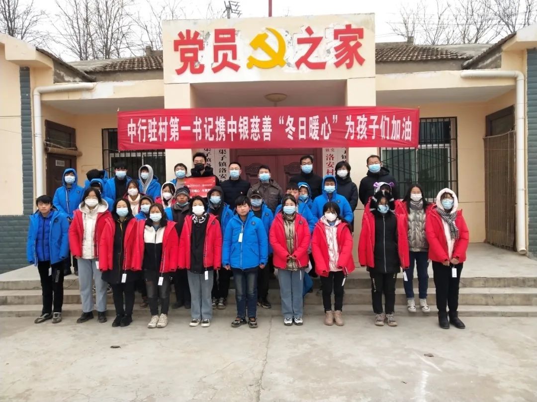 今年的春节前夕,我还引入中银慈善基金会的慈善资源,向所在渠子镇的全体初中、小学生捐赠羽绒服577件。