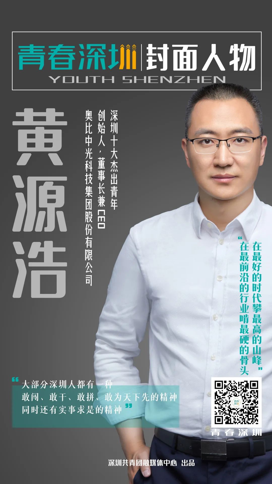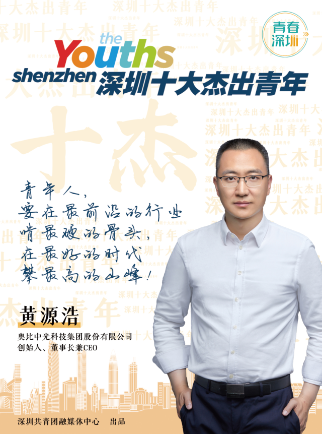 黄源浩,42岁,来深9年,奥比中光创始人、董事长兼CEO,荣获“深圳经济特区建立40周年创新创业人物和先进模范人物”称号。带领奥比中光将量产得3D视觉传感器广泛应用于智能手机、机器人、智能门锁等多个领域。