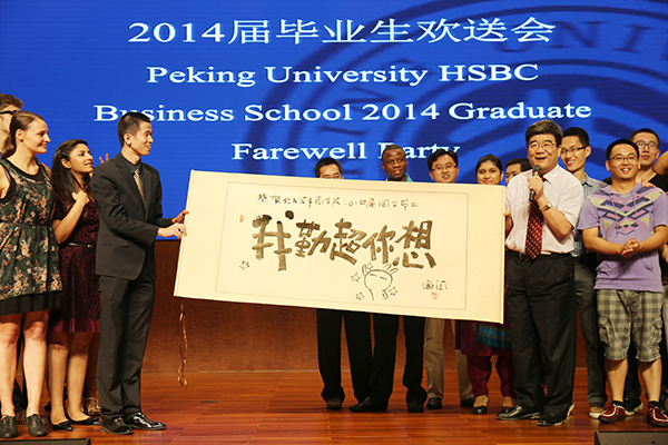 员瑜平那届毕业典礼上展示的海闻院长题字“我勤超你想”