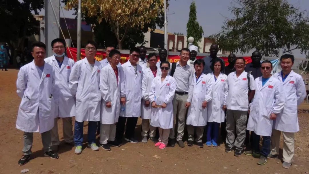 员瑜平(前排右六)陪同第五批援南苏丹医疗队赴法鲁济油区义诊