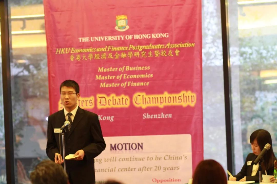 员瑜平在校时参加香港大学经济及金融学研究生会举办的辩论赛