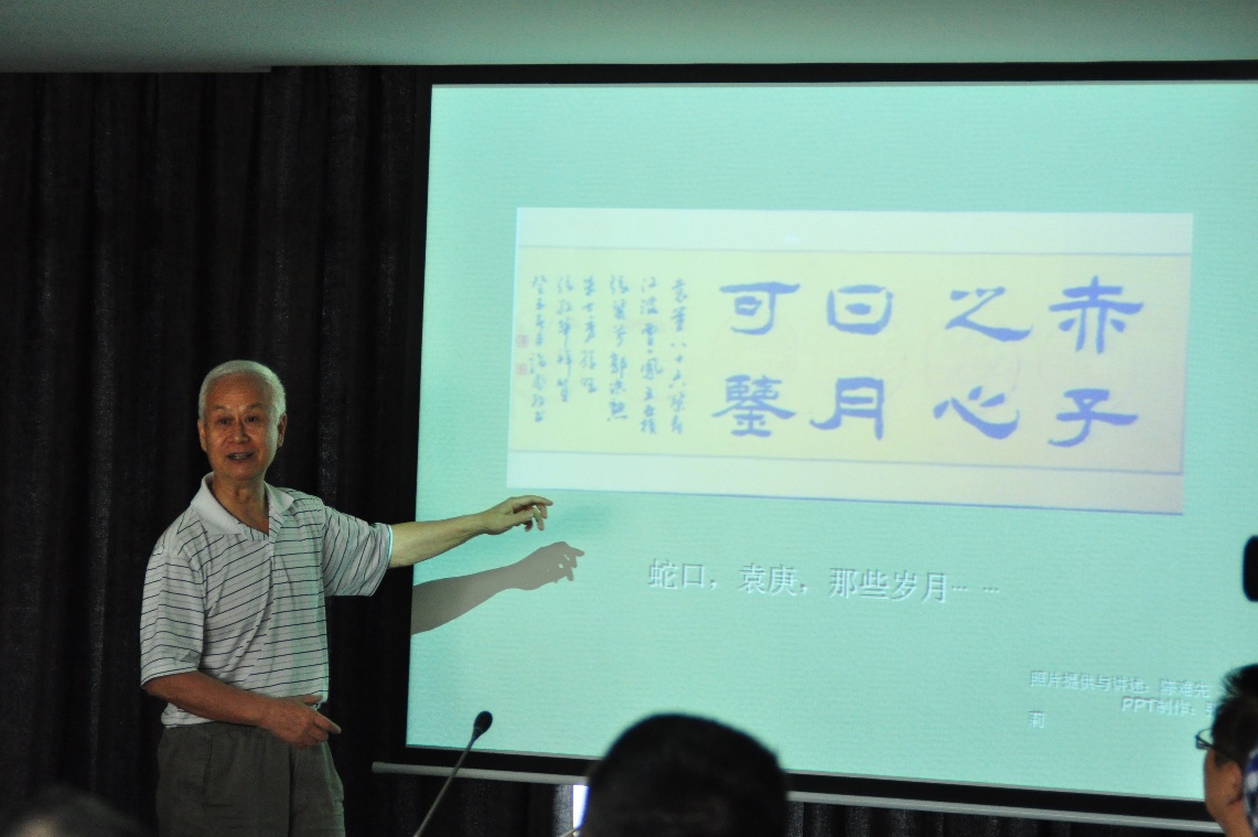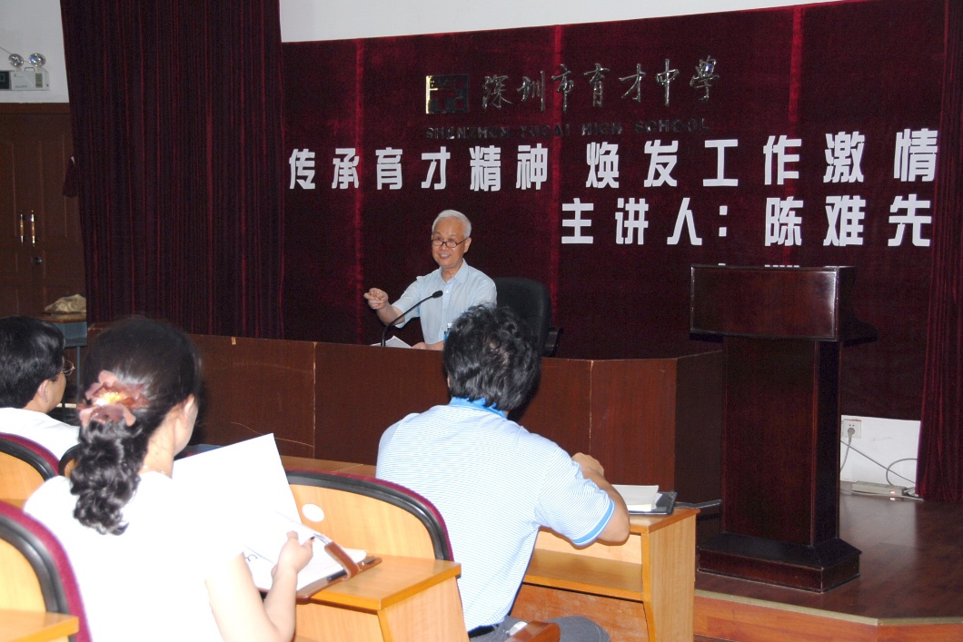 在育才二中阶梯教室,陈难先为育才集团的教师代表讲授育才精神