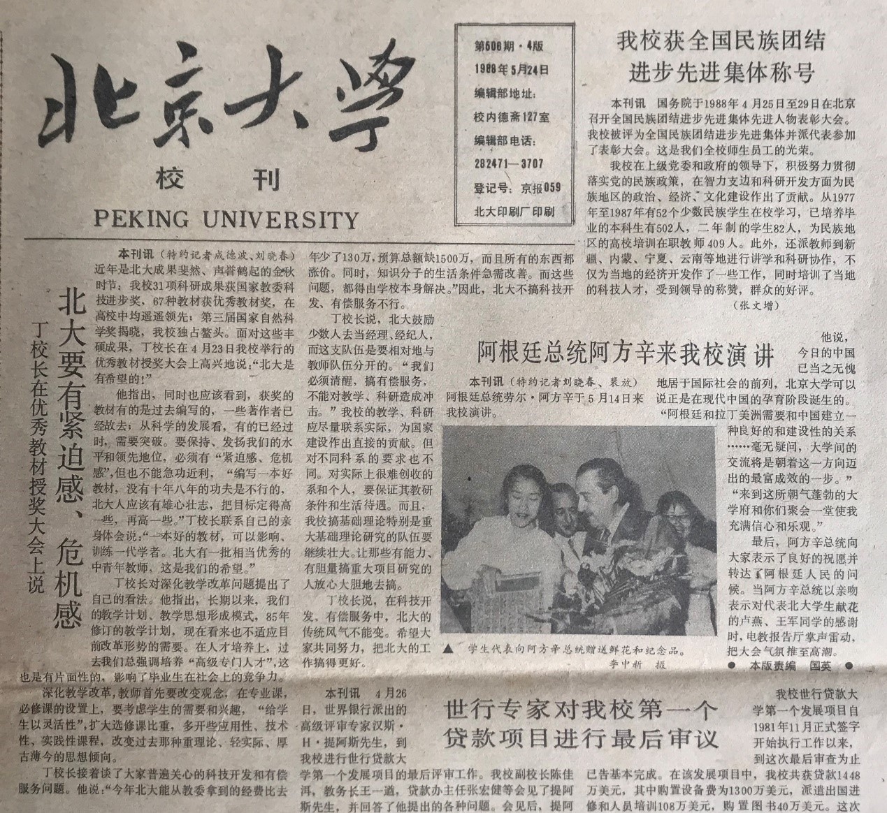 刘晓春在1988年5月北大校刊上撰写的两篇头版报道