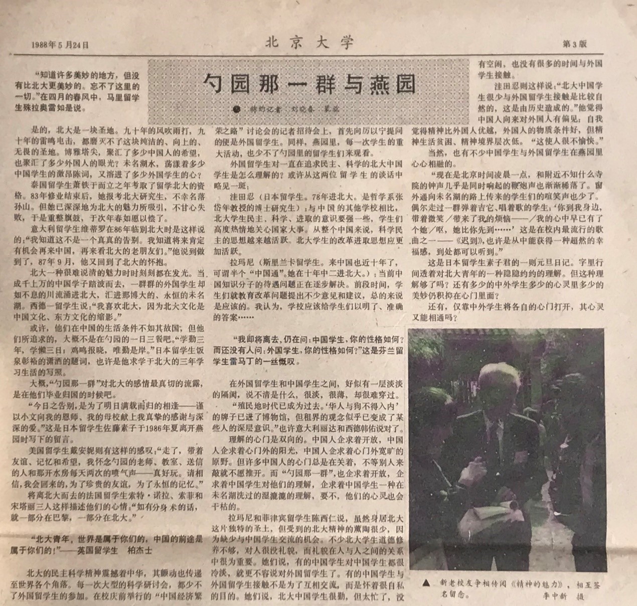 北大九十周年校庆采访稿件:1988年5月4日,刘晓春采访北大留学生