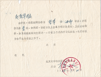 博士答辩通过不久,赵敦华收到了漂洋过海的北大人事处函件。