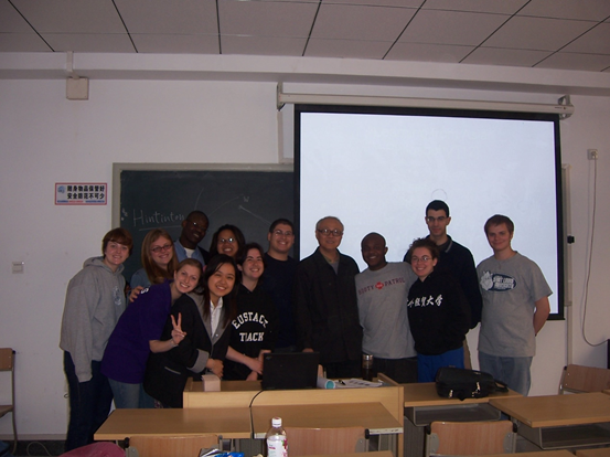 与外国留学生合影留念
