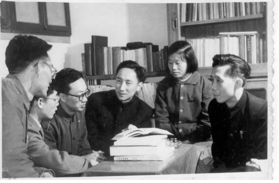 上个世纪60年代马真与同学们听取朱德熙、林焘两位先生的指导