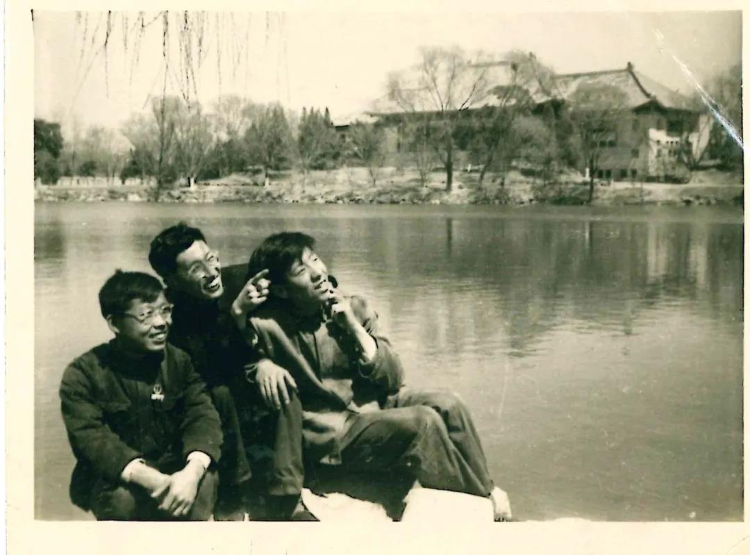 大学时期,袁行霈与中文系57级同学胡复旦、周强合影(图右为袁行霈)