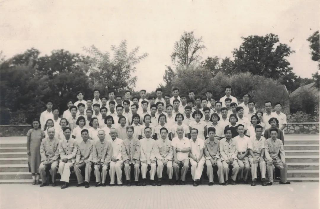 1958年9月,北京大学中文系汉语文专业54级师生毕业合影于文史楼旁