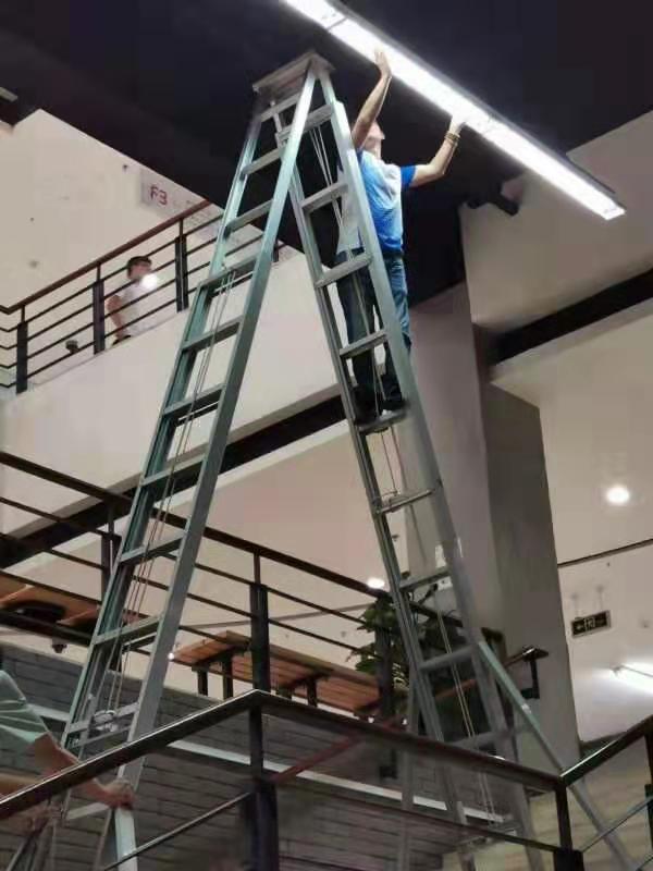 他们是谁?原来是动力中心物业管理办公室主任王源正在带领物业科的工作人员定期检修整个二教的照明系统。为保证二教日常教学工作和安全,他们在晚上11点保洁人员清理后才能进入,全楼三四千的灯具需要他们十几个人检修一宿,重复上百遍搬梯子爬梯子的动作。同学们鲜少抬头望见的二教天花板,对他们来说却是如此亲近。