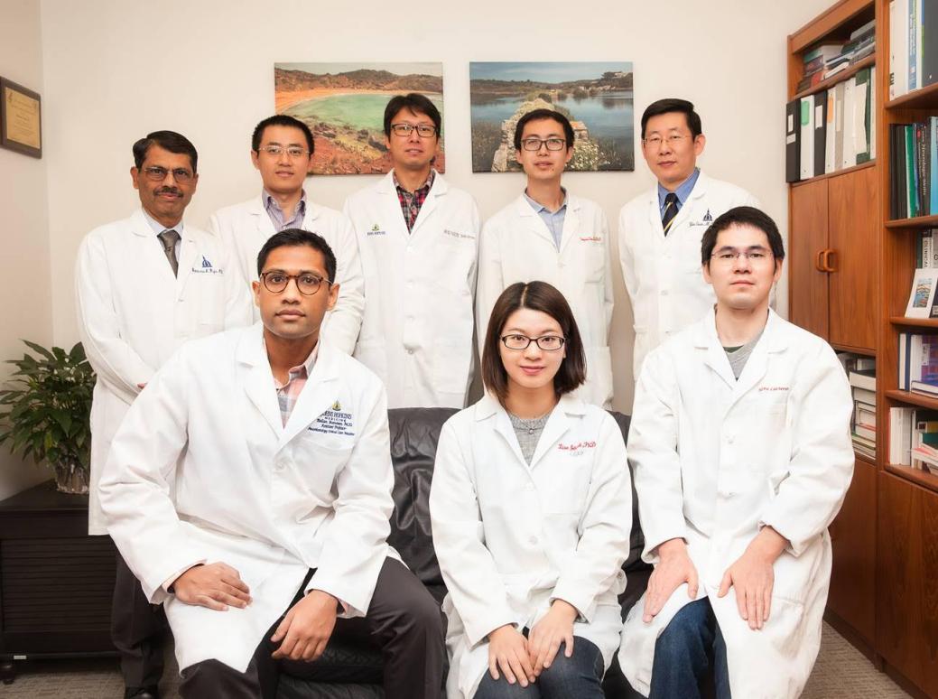 杨菲与美国实验室导师及成员合影(美国约翰霍普金斯大学医学院,2017年)