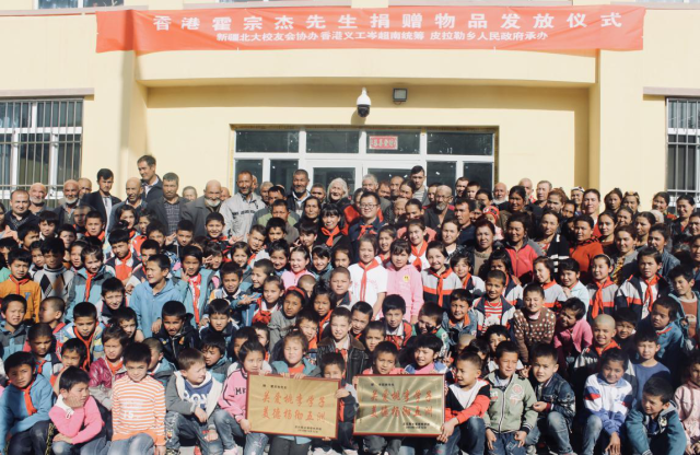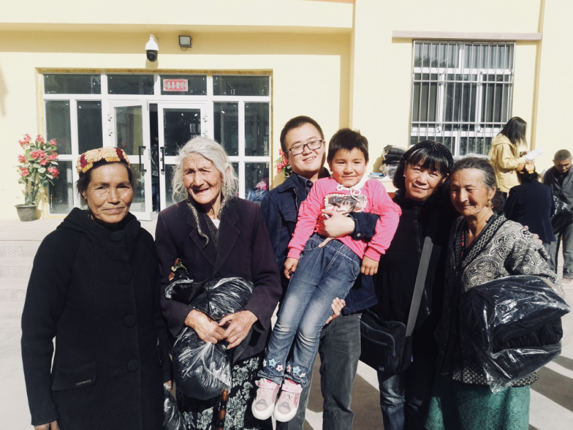 第三天的一大早我与钟梓欧来到一个名不见经传的村庄——墩都热村。准备将50件冬衣、100套文具发放到贫困老人和中小学生手中。村里为我们准备了简单的发放仪式。在冬衣发放现场,90岁高龄的茹则罕·喀吾力老人眼含热泪,用生硬的普通话说“共产党亚克西”,还同时竖起大拇指,以此表达内心的感激。在文具发放现场,接受捐助的学生阿依谢·艾散对我们说:“真的很感谢霍宗杰爷爷以及北大校友会的叔叔阿姨们给予我们的帮助,这笔宝贵的学习用品帮助了我们这些家庭困难的孩子们,把希望带到了我们身旁,把期待寄托在我们身上,我一定努力学好知识,以后报效祖国,回馈社会。”