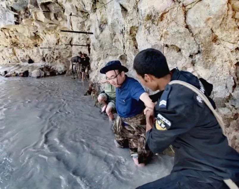在他们去的路上有两个泉水点可供补给喝水,而在回来时只有一个泉水点,“渴得不行时候只能喝叶尔羌河水,回来嘴都肿了好些天。没有水的时候,我们真的经历了‘上甘岭’,大家分一瓶水,每人一口,都很自觉自律,跟向导和一起去的同志都成了过命的交情!”