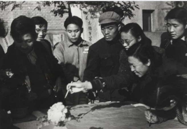 北大教职员聚集在一起签名拥护各党派联合宣言