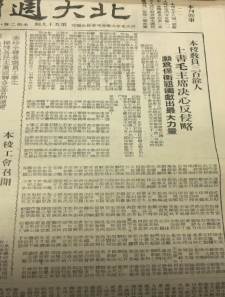 1950年10月27日,在讨论美帝侵略台湾、朝鲜与我们应该持什么态度时,北大化学系教研组的先生们决定发起签名上书毛主席的行动。这一行动迅速得到了全校教员的热烈支持,大家纷纷在签名书上签字表明态度和决心。《人民日报》和《北大周刊》都详细报道了此次“签名”行动的全过程。