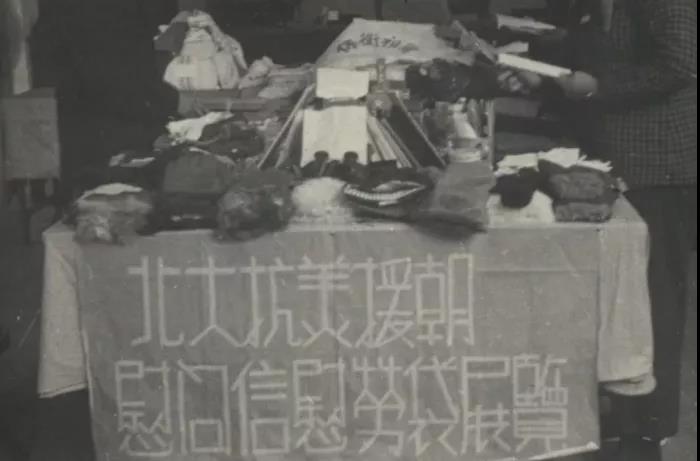 1950年11月24日,北京大学号召全校师生踊跃向朝鲜人民军和中国人民志愿军捐献慰劳品和写慰问信。北大档案馆藏的老照片还留存着北大女学生们积极写慰问信、热心给志愿军缝制棉手套、制作慰问袋的画面,包含了国内竭尽所能支持志愿军保家卫国的深刻情感和实际行动。
