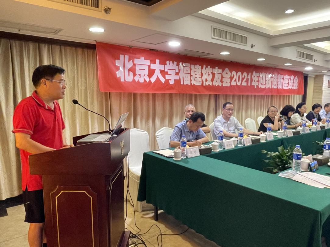 2021年8月22日上午,北京大学福建校友会2021年迎新送新(迎接新校友、欢送新生)座谈会在福州阳光假日酒店召开。出于疫情防控需要,今年座谈会首次采取线上线下相结合的方式举行,40余名新老校友、新生代表莅临现场,30余名新校友、新生通过视频会议参会,曹明浩校友主持会议。