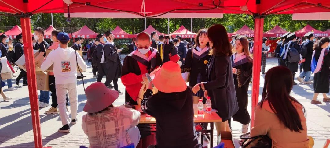 早上7:20分,第一名毕业生早早到达了接待现场。“同学拿好门票和校徽”,接待处的老师们细心提醒道。“欢迎回家”一句温暖的问候,换来了同学们开心的笑颜。