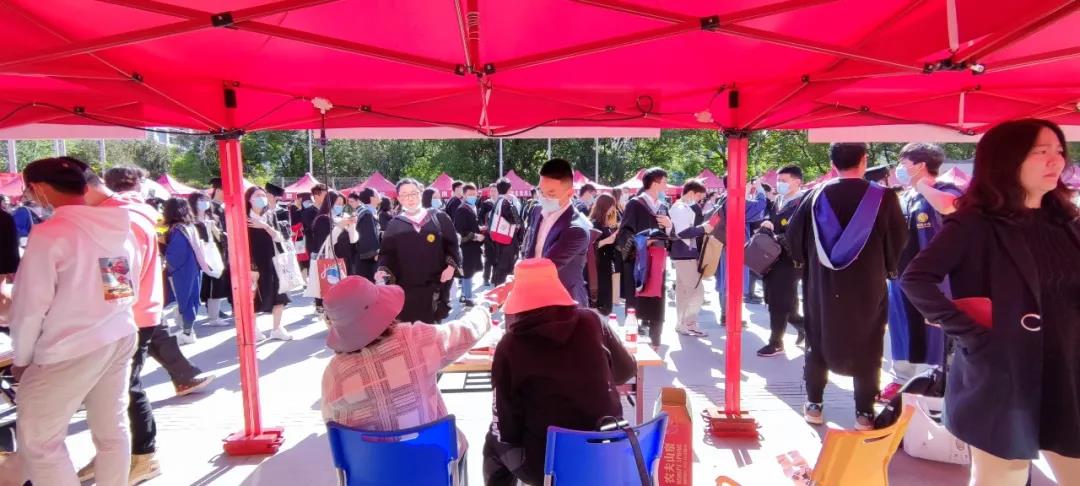 陆陆续续地,穿着学士服的毕业生们纷纷到达阔别一年的母校,手中提着学院悉心准备的帆布袋和纪念册。同学们找着相熟的朋友,举起手中的学士帽,相拥着留下一张张亲密合照。