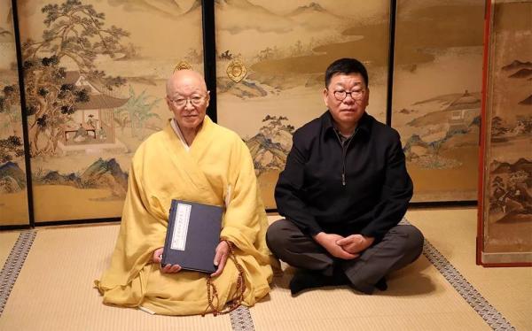 2018年4月29日,韩方明在日本高野山会见真言宗无量光院住持土生川正道大阿阇梨