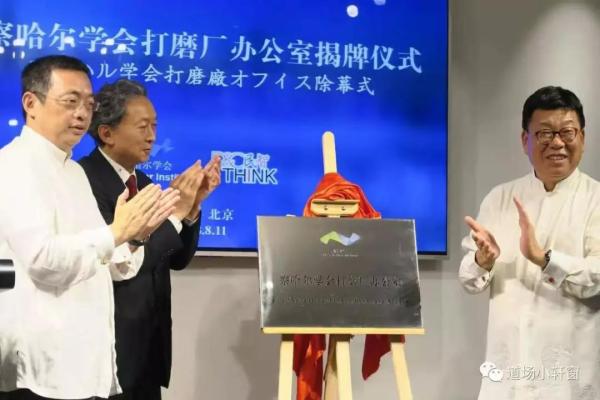 2018年8月11日察哈尔学会打磨厂办公室揭牌仪式,日本前首相鸠山由纪夫出席并对察哈尔学会表示祝贺