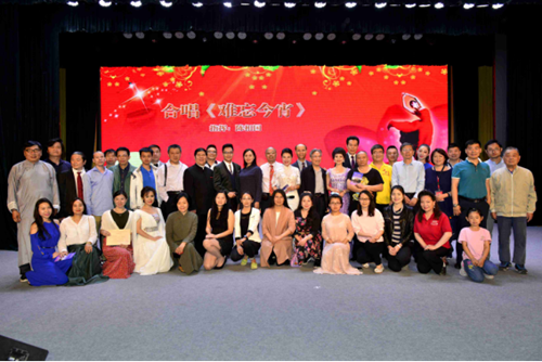 北大76级西语系校友、北大德国校友会名誉会长、德国京剧协会秘书长顾裕华(右二)等远道而来,登台演出