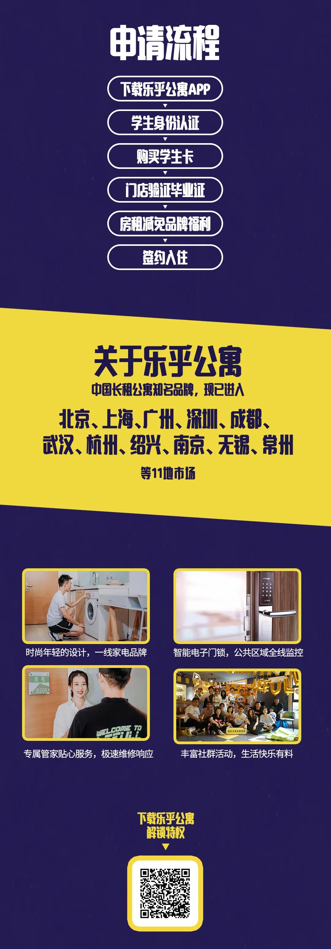 乐乎城市青年社区,强调“快乐居住,惬意生活”的愉悦体验,致力打造高品质的居住生活空间,满足不同场景下的居住需求,目前覆盖北京,上海,广州,深圳,南京,武汉,杭州,成都,常州,苏州,天津,郑州等12座城市。