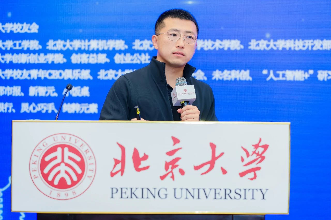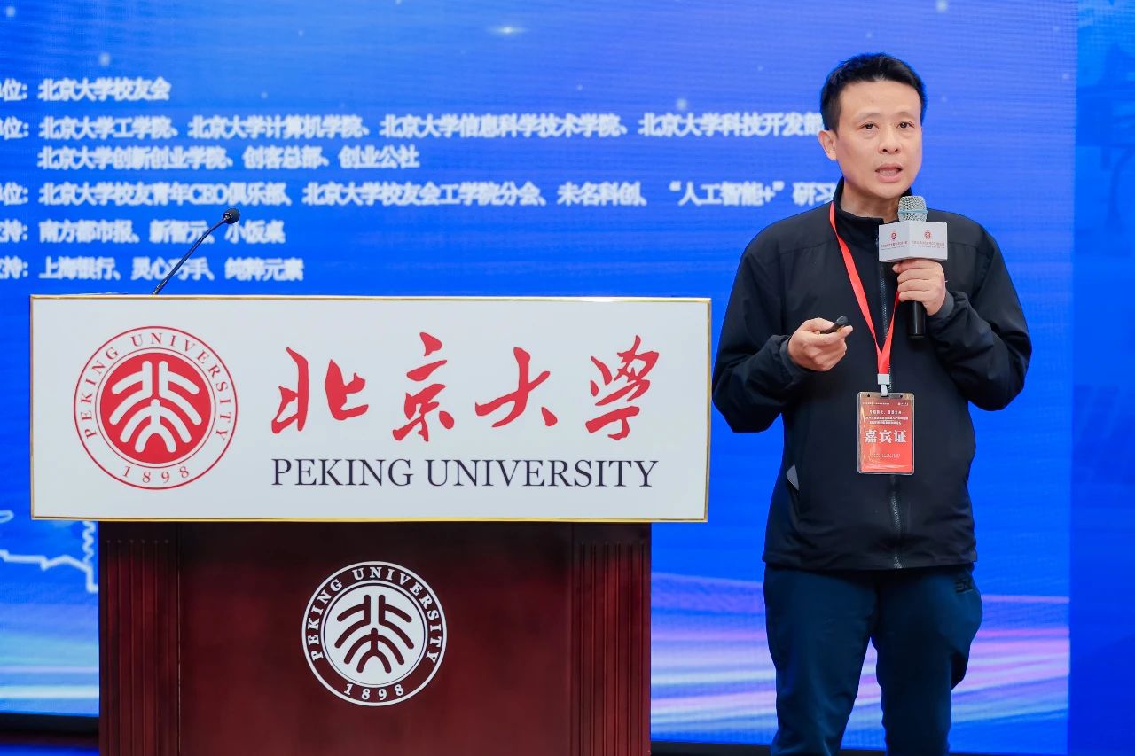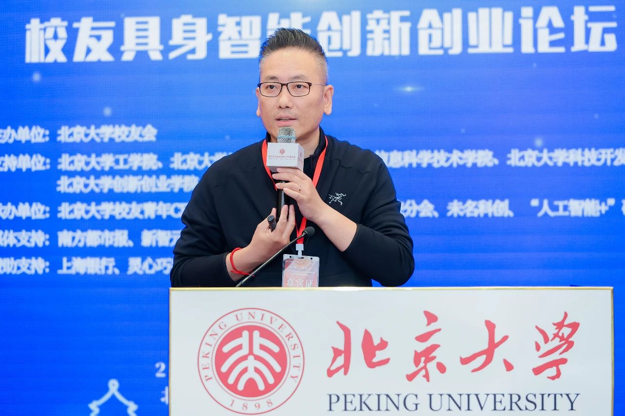 北京大学校友青年CEO俱乐部监事长、华纳创新CEO胡运兴作为承办单位代表,分享了自己工学院工程博士的产学研融合经历。他强调“硬科技需要硬功夫”,提出“科学范式进入智能化时代”,中国应发挥系统工程优势,在复杂场景中培育技术生态,并呼吁青年校友把握智能需求涌现的历史机遇。