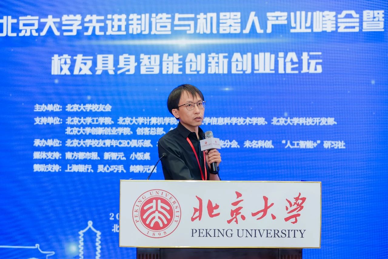 5月3日,北京大学建校127周年之际,“身启新元、智绘未来——北京大学先进制造与机器人产业峰会暨校友具身智能创新创业论坛”在北京大学中关新园举行。本次峰会由北京大学校友会主办,北京大学工学院、北京大学计算机学院、北京大学信息科学技术学院、北京大学科技开发部、北京大学创新创业学院、创客总部、创业公社支持,北京大学校友青年CEO俱乐部、北京大学校友会工学院分会联合承办,汇聚400余位学术专家、产业领袖、校友企业家及投资人代表,展示北大先进制造与机器人及具身智能领域科研成果,共同探索机器人从“实验室”迈向“应用场”的关键路径,展望未来发展趋势。