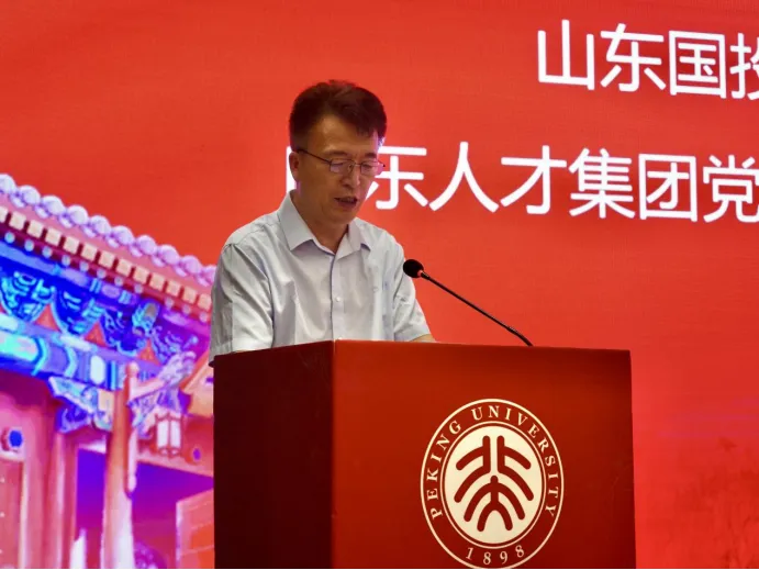 杨光军代表山东人才集团欢迎北大青年才俊扎根齐鲁。他从政策供给、平台搭建、服务保障三个维度介绍山东人才集聚成就,强调山东在全国率先成立省级人才集团,当前正与山东国投重组整合开启"二次创业",实施"五个三"发展战略,做强人才"招引、服务、投资、数字"四大核心板块。"集团与校友会共同成立的山东北大校友服务基地,将提供人才引进、政策咨询、投融资支持等全方位服务,让每一份理想在齐鲁绽放。"