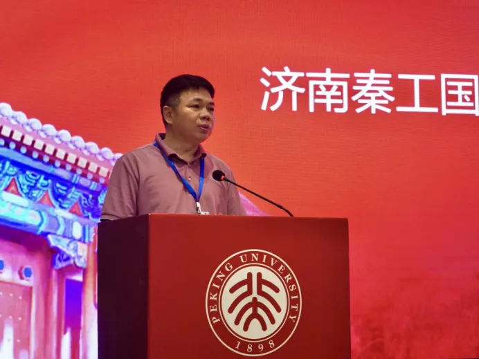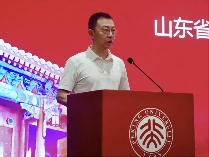 济南秦工国际贸易有限公司董事长秦长岭作为老校友代表,分享了自己深耕山东30年的经历。“从燕园到泉城,支撑我们的是北大精神与山东'厚德载物、自强不息'的品格。”他以企业在卡车出口、跨境电商领域的发展为例,鼓励新校友播撒智慧种子,新生铭记家乡牵挂,以"周虽旧邦,其命维新"共勉。