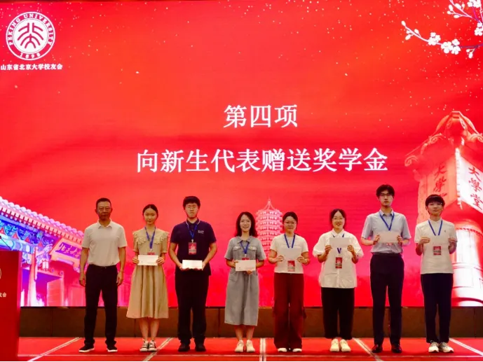 座谈会上,高慧芳、杨光军、吴俊、于永水、邢进、王春刚等领导为新校友代表赠送《燕园情齐鲁缘——二十年我们这样走过》校友会资料汇编、《校友通讯录》等纪念品,承载着校友会的历史记忆与温暖关怀。王伟会长为新生代表颁发奖学金,鼓励他们在燕园开启勤学笃实的求学之路。