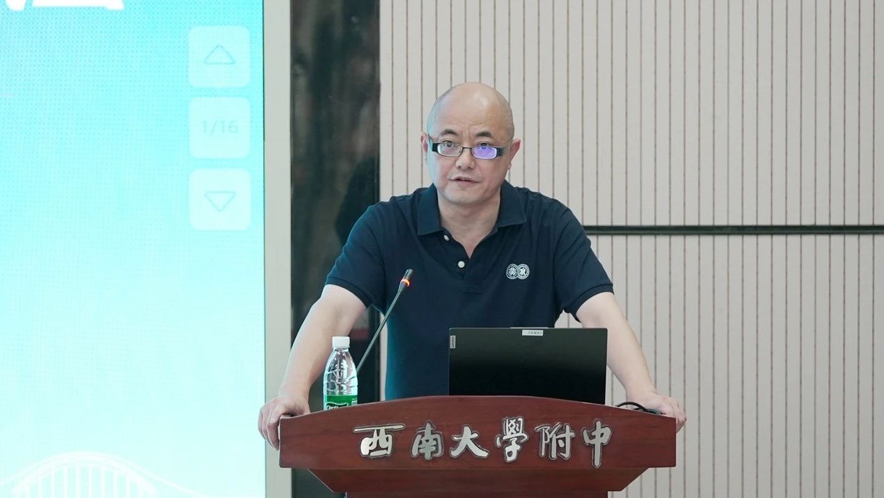 西南大学附属中学党委书记欧健致辞,希望“新北大人”胸怀“国之大者”,成长为民族复兴栋梁;期待新重庆人扎根巴渝,为地方发展注入智慧;鼓励附中学子以北大校友为榜样,用奋斗书写青春。