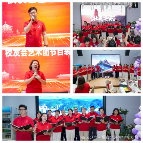 文艺演出环节再次提升现场氛围——郑永哲的独唱《缘分的天空》如清泉流淌,唱响同窗情谊;西安北京大学校友会艺术团磅礴演绎的《壮美延安》震撼人心;王翊的《我爱你中国》激荡澎湃尽显爱国情怀;当《走向复兴》的激昂旋律响起,全场校友自发齐声合唱,如浪潮声将气氛燃至顶点。