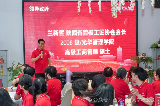 兰新哲以柿树为喻发表致辞。他精妙阐释道:柿树须嫁接于软枣砧木方能结出丰润果实,这一自然哲理寄托着对来陕校友的期许——期望众人如柿树般深植古都西安的沃土,茁壮成长。面对人工智能的时代浪潮,兰会长强调需将“新质生产力”转化为发展动能,推动学术积淀与社会需求的创造性融合。致辞尾声,他以“事事如意”祝福新校友,期盼大家在三秦大地再创辉煌。