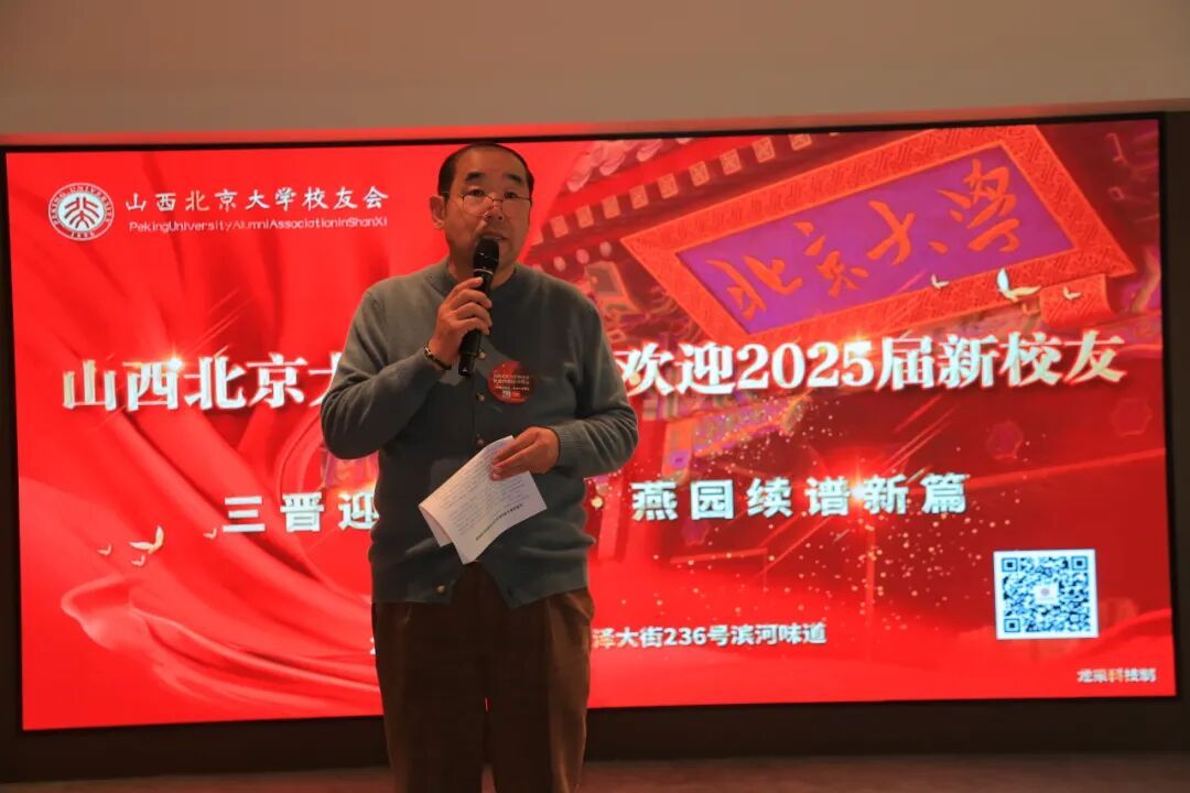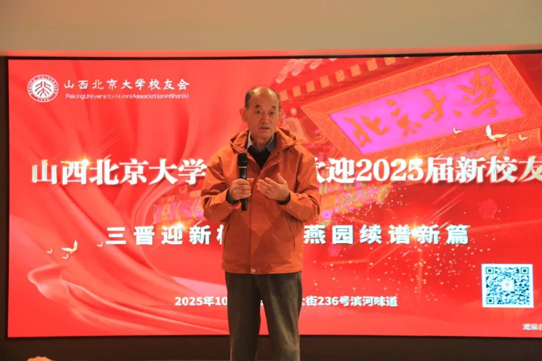 范晋生致辞,欢迎回到山西的工作的2025 届新校友。他表示,北大精神传承离不开 “老带新” 的接力,一代代老校友将北大校训融入血脉,在山西建设中拼搏,为后辈奠定基础、树立榜样。他希望新校友结合北大创新精神与山西务实品格,在岗位上成长为能扛事、能担责的新一代山西北大人。