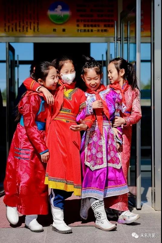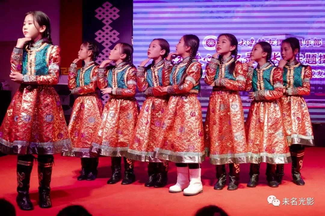 简短的捐赠仪式结束后,学校在多功能厅为参加此次公益活动的北大校友摄影俱乐部成员举办了欢迎演出。小学生和幼儿园的小朋友们盛装上台,表演了十几个极富蒙古族特色的歌舞、诗朗诵、小合唱等节目。