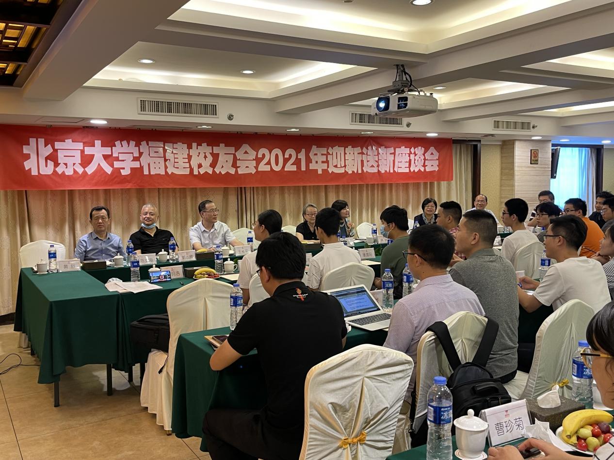 2021年8月22日上午,北京大学福建校友会2021年迎新送新(迎接新校友、欢送新生)座谈会在福州阳光假日酒店召开。出于疫情防控需要,今年座谈会首次采取线上线下相结合的方式举行,40余名新老校友、新生代表莅临现场,30余名新校友、新生通过视频会议参会,曹明浩校友主持会议。