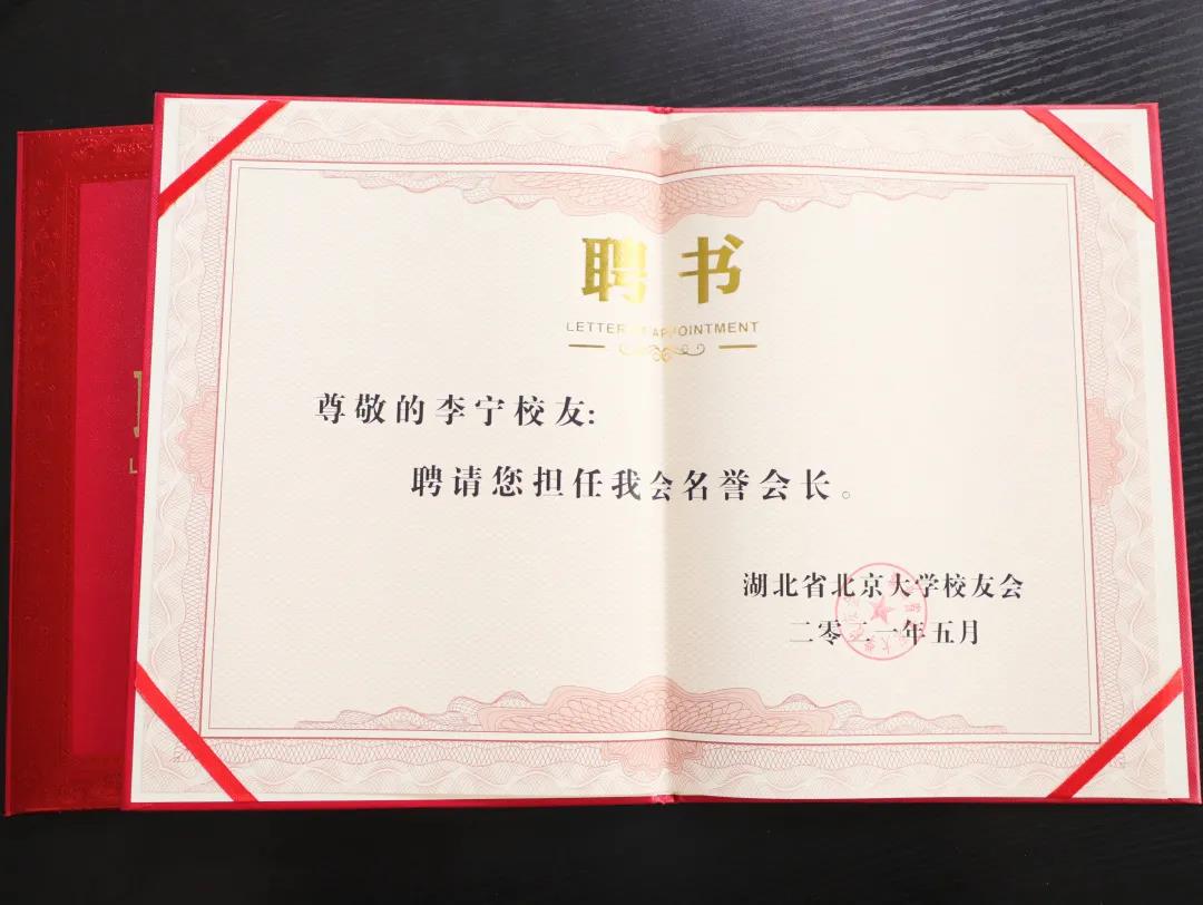 李宁受聘为湖北省北京大学校友会名誉会长