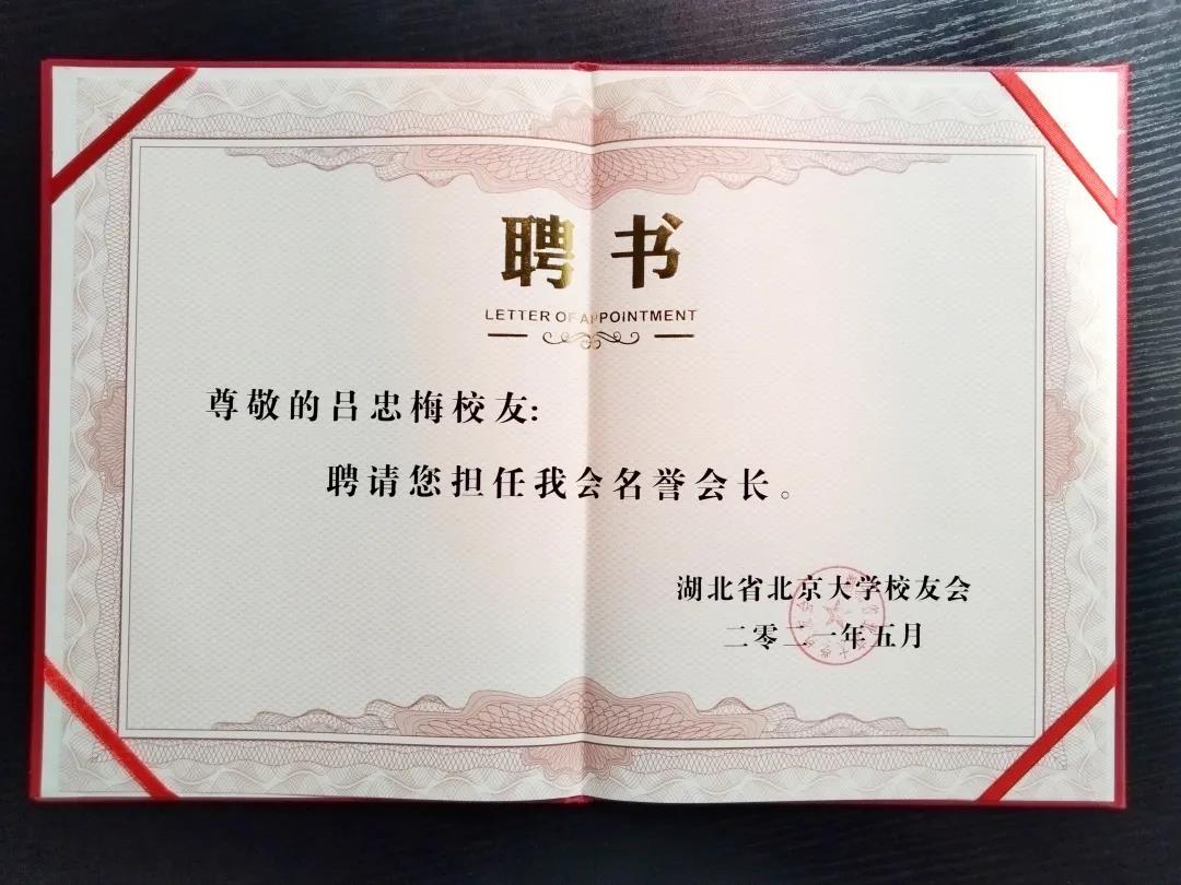 吕忠梅受聘为湖北省北京大学校友会名誉会长