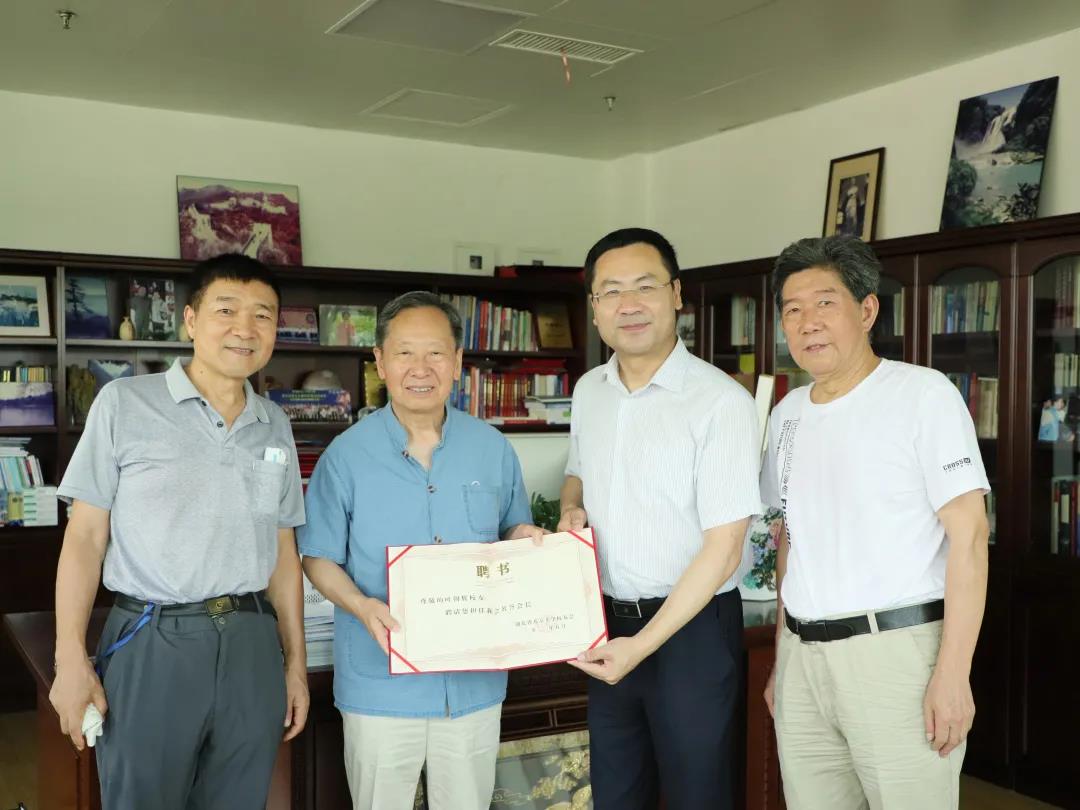 2021年7月20日,会长刘萌、副会长兼党支部书记杨裕利、监事长韩晓光一行,看望武汉市委原副书记程康彦,并为其颁发名誉会长聘书。