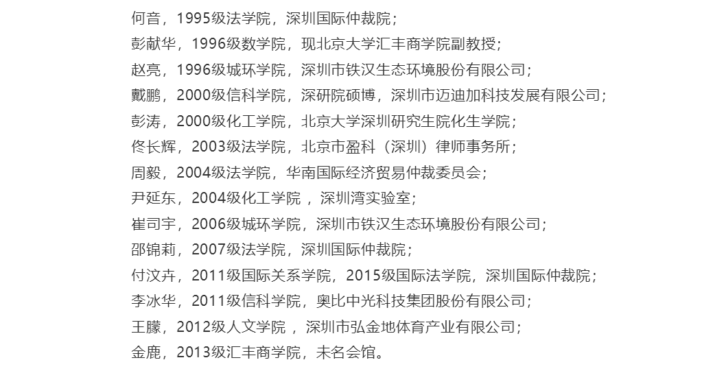 在北京大学招生办广东组以及深研院院办和教务处的统一部署下,北京大学深研院校友办联合深圳校友会负责统筹安排对外机构、校友企业参访和校友分享活动。由于人员众多,结合最新防疫要求分批分组进行,累计安排参访约30场次,参访机构和企业包括深圳市腾讯计算机系统有限公司、深圳市规划与自然资源局、中国计量科学研究院深圳技术创新研究院、深圳市当代艺术与城市规划馆、奥比中光科技集团股份有限公司、深圳市铁汉生态环境股份有限公司、深圳国际仲裁院、深圳湾实验室、鹏城实验室和未名湖会馆(深圳)。