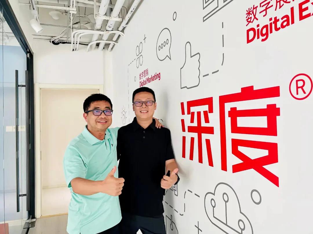 另外,李文胜秘书长、校友石晨旭、秦冲一行还走访参观了校友企业——深度传播集团。张吉成董事长就深度传播集团在数字营销、互动营销、品牌营销、影视科技、数字展厅等领域的专业服务作了分享。在张吉成董事长的带领下,深度传播集团深耕青岛、布局全国,目前已发展成为全国领先的整合传播集团,服务了全球1000多家客户。