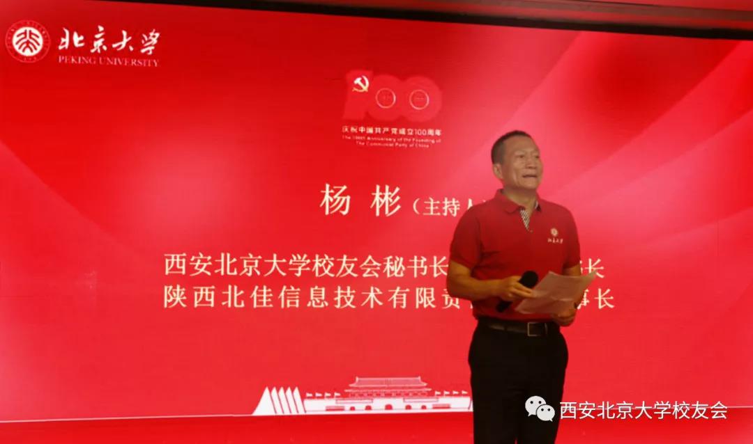 在习近平主席于6月25日下午带领中央政治局同志来到北大红楼参观“光辉伟业红色序章——北大红楼与中国共产党早期北京革命活动主题展”,重温李大钊、陈独秀等开展革命活动、推动马克思主义在中国早期传播、酝酿和筹建中国共产党等革命历史并给与高度评价的第二天,即2021年6月26日下午,西安北京大学校友会的校友们满怀激动与喜悦的心情欢聚一堂,为庆祝中国共产党成立100周年隆重举办“永远跟党走”主题活动。