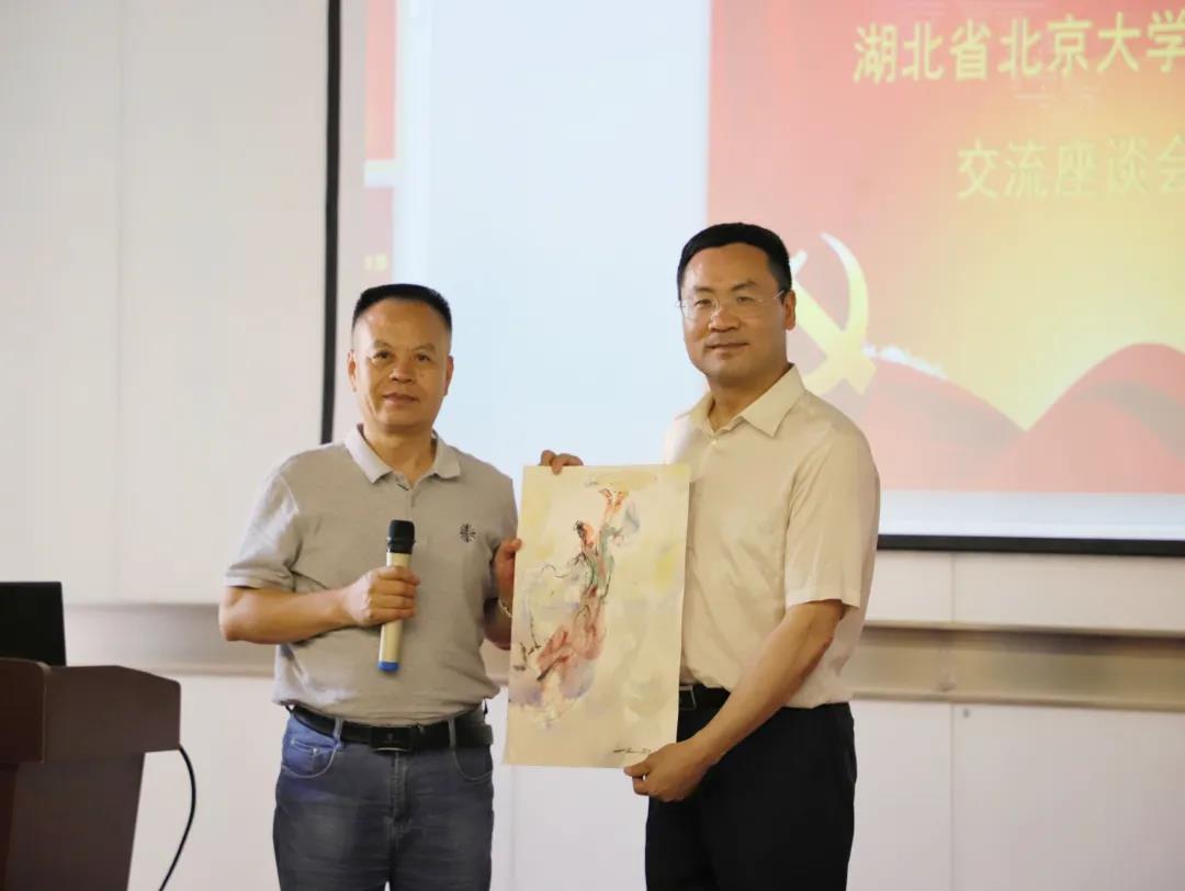 最后,刘萌会长代表湖北省北京大学校友会,向河北省北大校友会赠送了由著名画家杨凯歌创作的题为《美丽初心》画作。